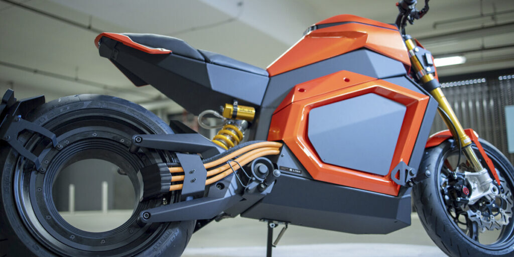La moto eléctrica Verge TS tiene una imagen elegante y contemporánea que enfatiza sus características de alta tecnología con una estética minimalista.