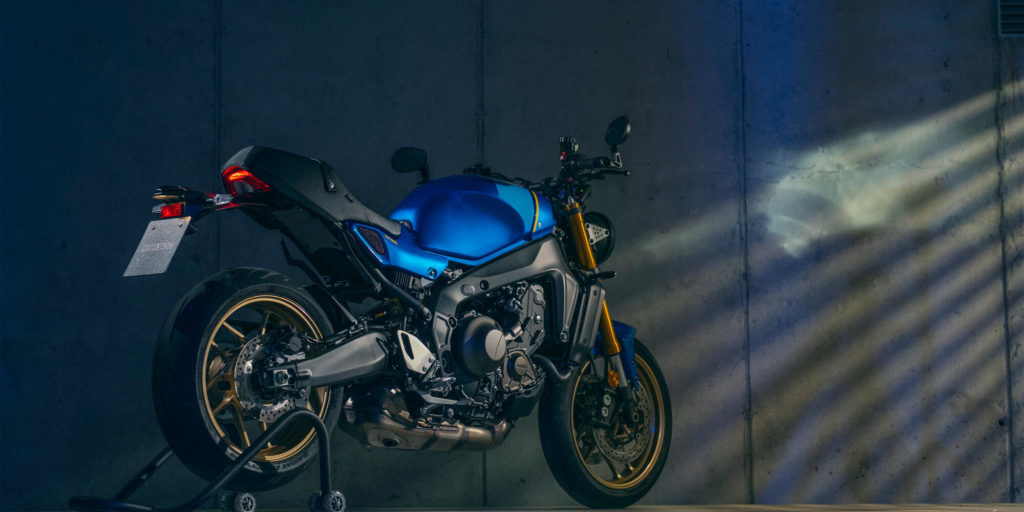 Debajo de la piel, la XSR900 hace uso de la plataforma Yamaha MT09, respaldada por el motor de tres cilindros CP3 de 889 cc más potente de la firma, aunque ajustado para proporcionar una nota de escape con más carácter.