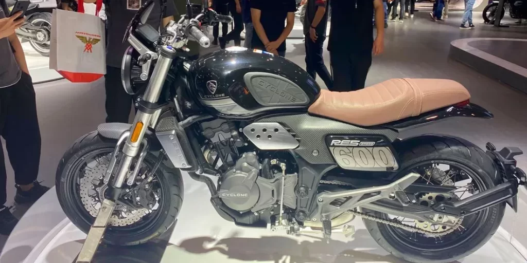 En la parte delantera, es probable que la horquilla invertida sea una unidad KYB, ya que esa es la marca utilizada en la RX650, pero más corta para adaptarse al estilo de la roadster. Las llantas de radios ayudan con el aspecto retro, pero contrastan con un faro LED e intermitentes y proporciones relativamente modernas para el tanque y el asiento. Hay un toque de Ducati Monster en la forma, pero no llega a ser el tipo de clon que le da a la industria de motos de China un mal nombre.